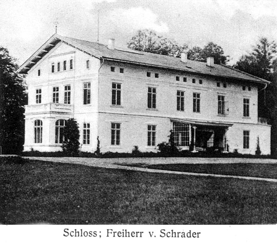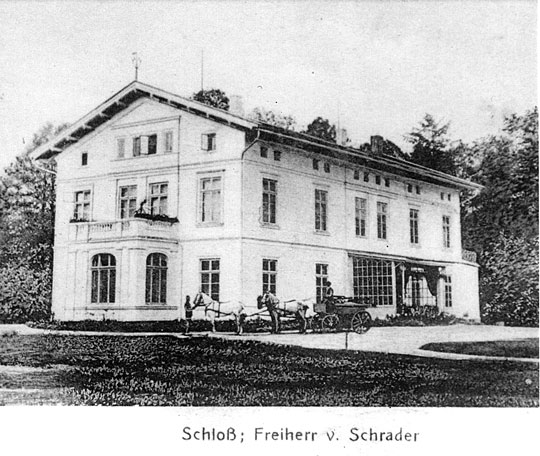 Eingangsseite 1915, in der Mitte über dem Balkon das Schradersche Wappen