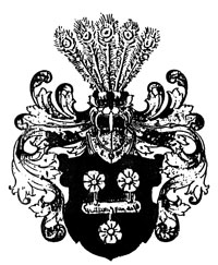 | Das Wappen der Familie von Tode: Drei rote Rosen an eime Zweig auf goldenem Grund |