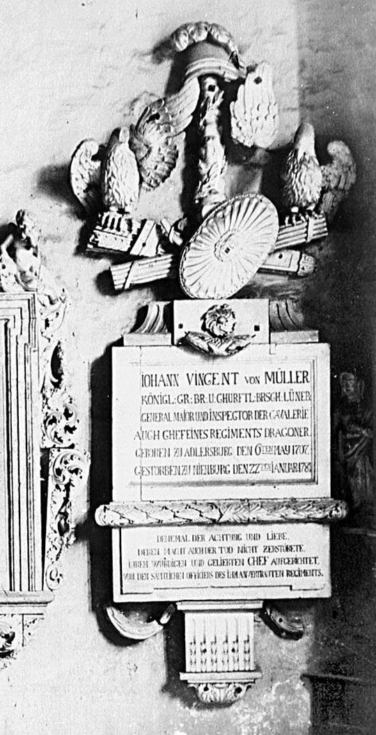 Johann Vincent von Müller wurde am 10.05.1708 in Adlersburg bei Grünendeich in der Nähe von Stade als Sohn des klg. schwedischen Majors Johann Vincent von Moller, Herr auf Adlerburg geboren. Seine Mutter, Juliane Victoria war eine geborene von Brandt. Nach von Lenthe/Mahrenholz „Der Adel Niedersachsens“ Celle und Hannover 1964, handelts es sich bei der Familie von Müller = Moller vom Baum ursprünglich um eine Hamburger Ratsfamilie, die in schwedischen Diensten in Hamburg und im niedersächsischen Kreis tätig war, die 1613 in den Reichsadelstand erhoben wurde und 1654 die schwedische Adels-Naturalisation erhielt. Die Familie hatte Besitzungen in Adlersburg (=Grünendeich), Neßhof, Müllersburg und Ziebel (im Alten Land).