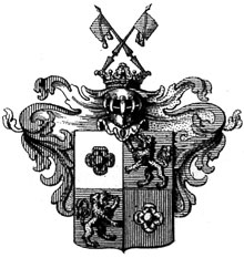 ![]() | Wappen der Familie von Müller: vertikal geteilt; links ein halbes Mühlrad, rechts eine gespiegelte Lilie |